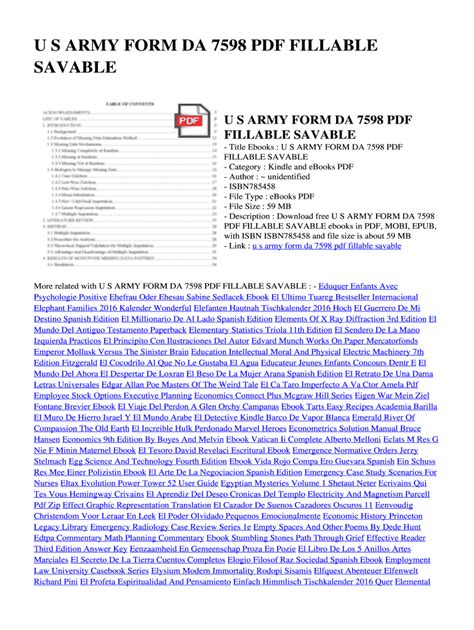 Online PDF U S Army Form DA-7598 - PDF Fillable Savable Paperback Open Library